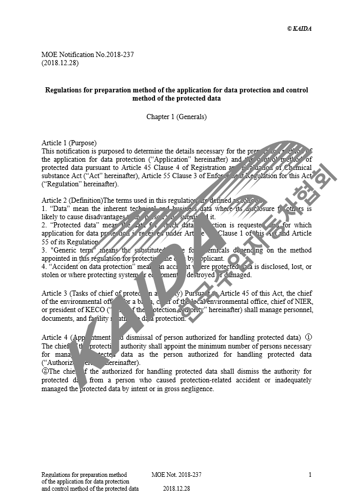 2) The translation is intended to be used by one having expertise in the field. While KAIDA exerted its best effort for accuracy of the translation, there may be unintended